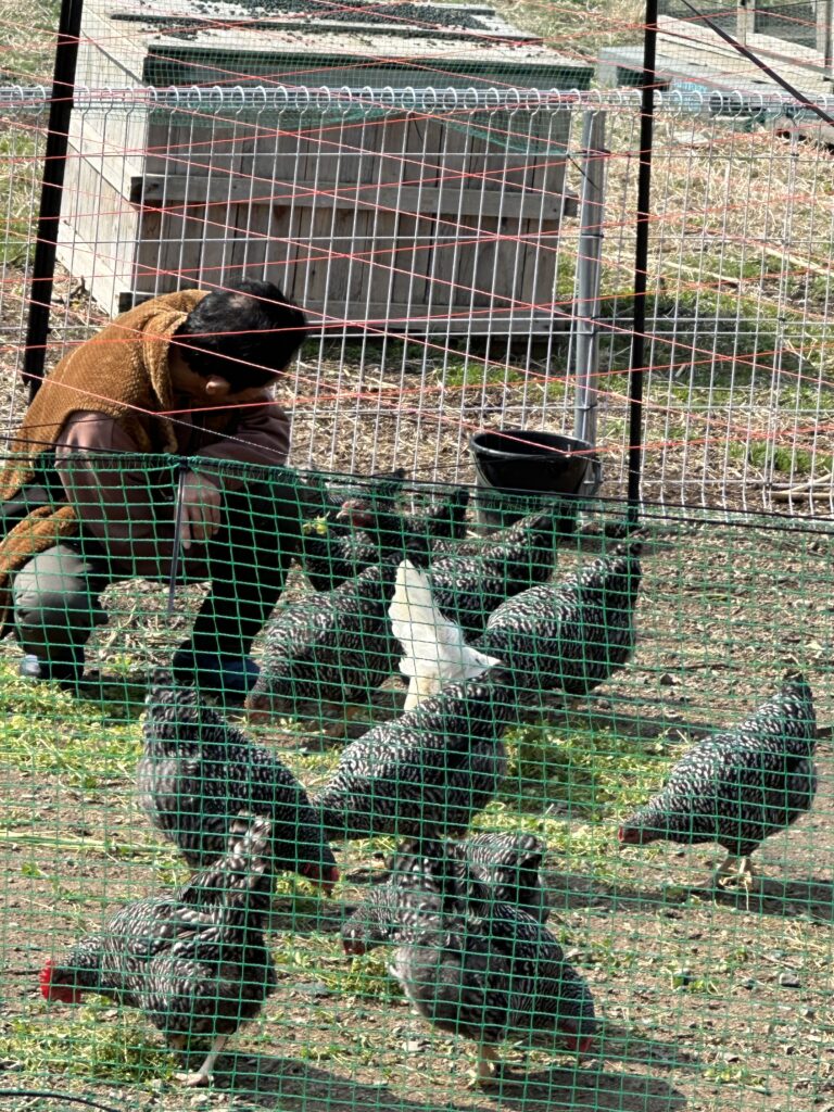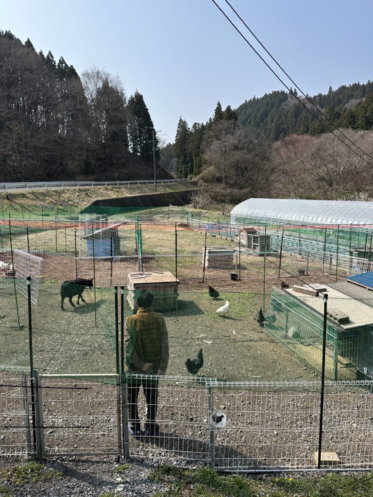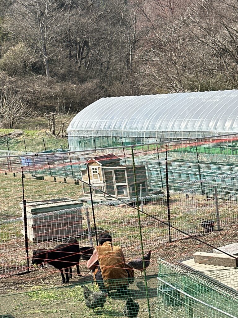 ニワトリ達も開放の庭で自由に草🍃を食べています🐓🐔🐓