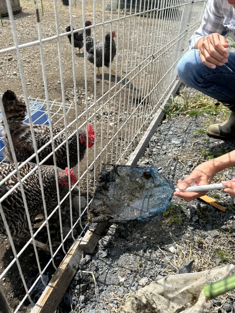 🐓🐔🐓にわとりさんたちにあげて、楽しんでいました(^^♪