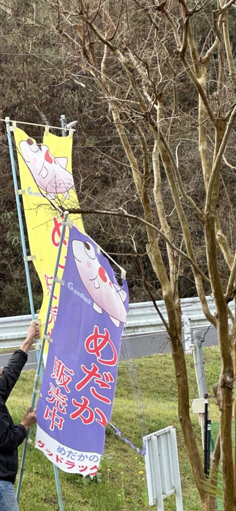 昨日の春の嵐?突風でのぼり旗が無残な姿に、、、😢本日は撤去作業からスタートでした。