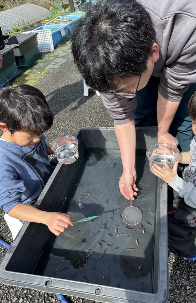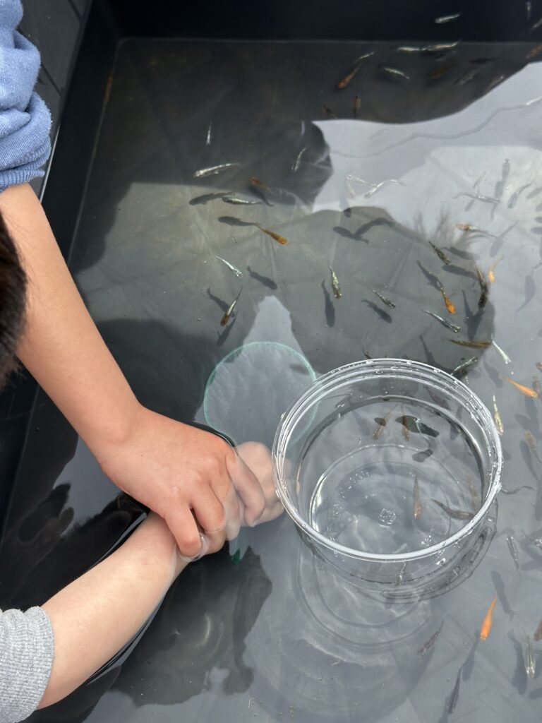 次にめだかすくいを楽しみました🐟初めての挑戦です。