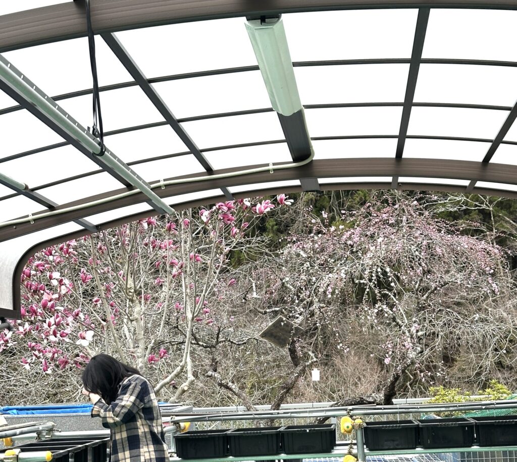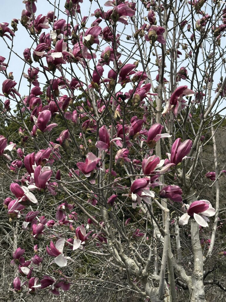 赤紫のモクレンがこれから見ごろを迎えます。