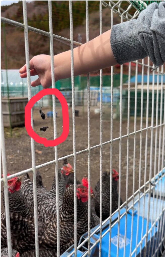 ニワトリにおやつです。手伝ってくれました。ありがとう🥰とても楽しそうでした。
