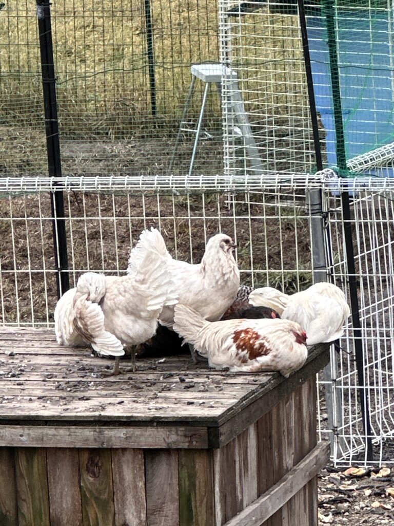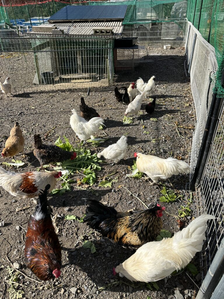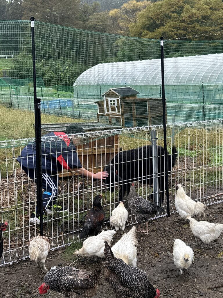孵卵器で孵って育ったヒナが外の小屋に引っ越し、