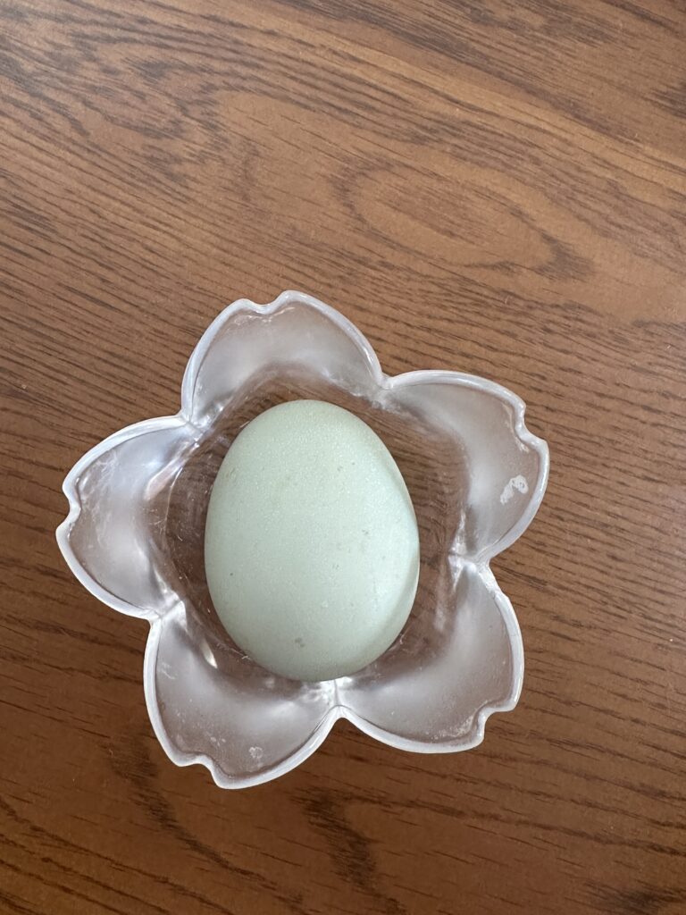 半年後12月11日、めでたく初卵にお目にかかりました🥚青い卵です!