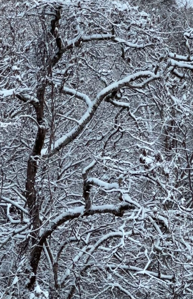 柿の木は雪化粧。美しいとばかり言っはいられない、庭の雪履きを決行!