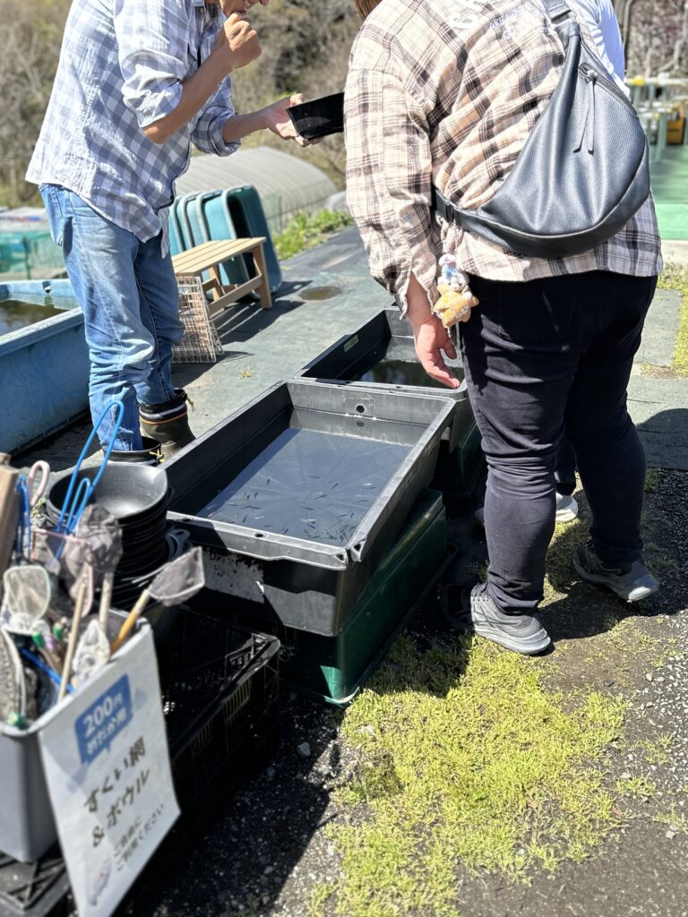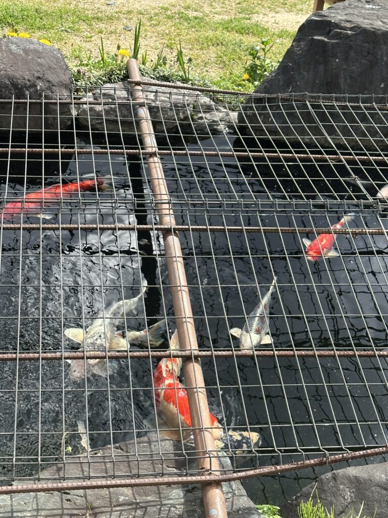 今日は暖かだったので、鯉たちも水面に上がってきて、お客さんにごあいさつ。