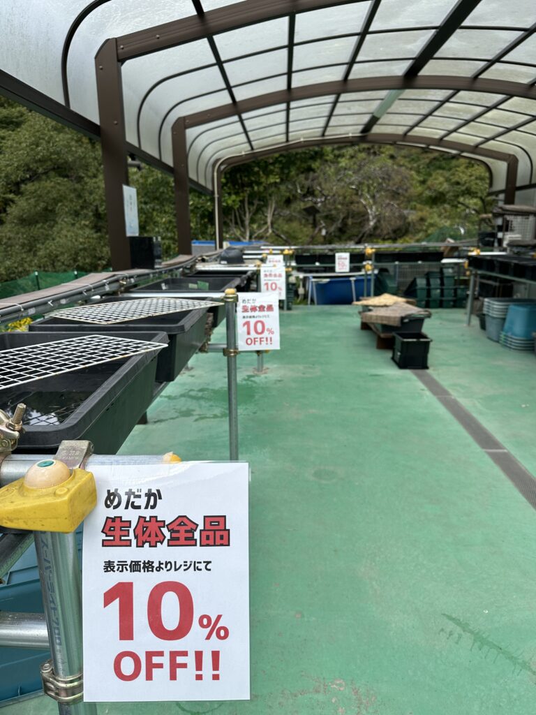 めだかすくい:2種類。今季最後の値引きセールでお客様を待ちます。