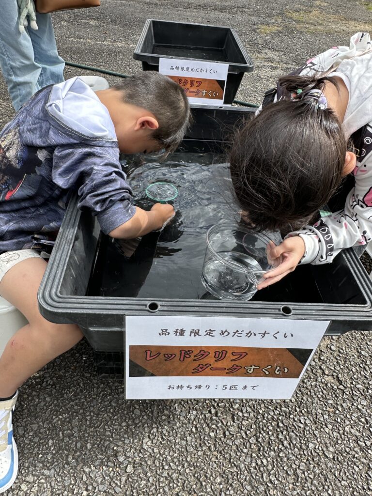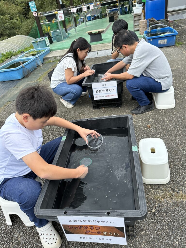 それぞれ、2種のメダカすくいを交互にご家族で楽しまれました。