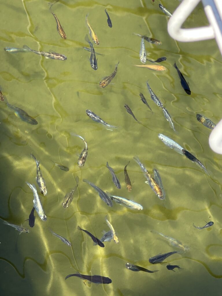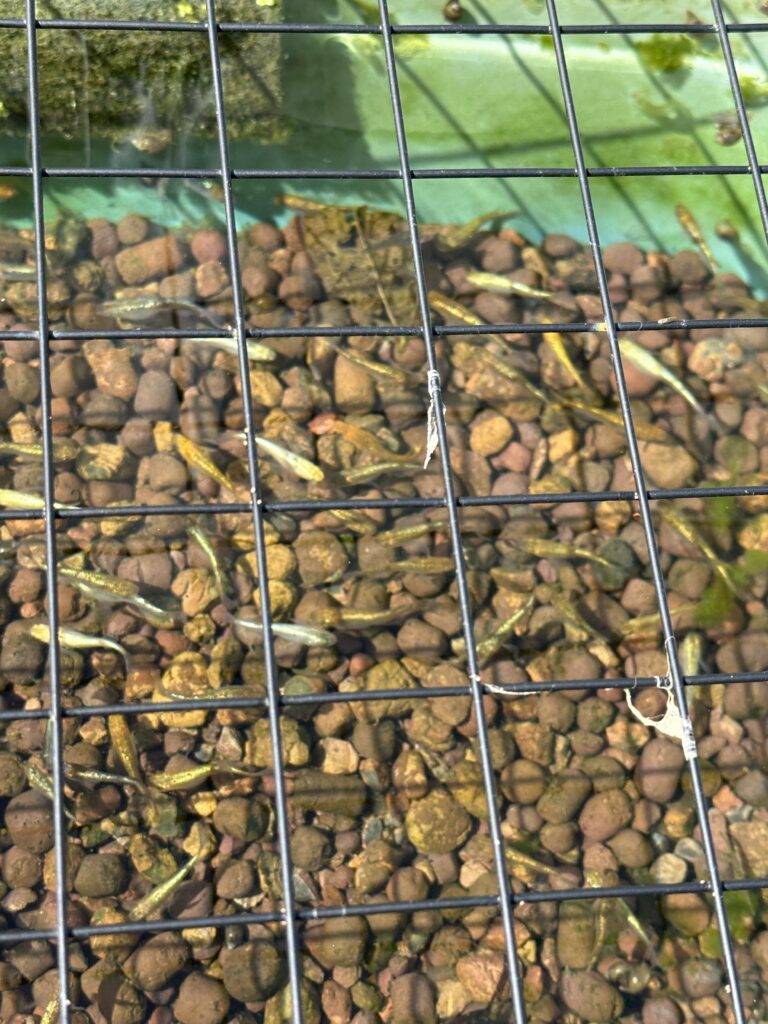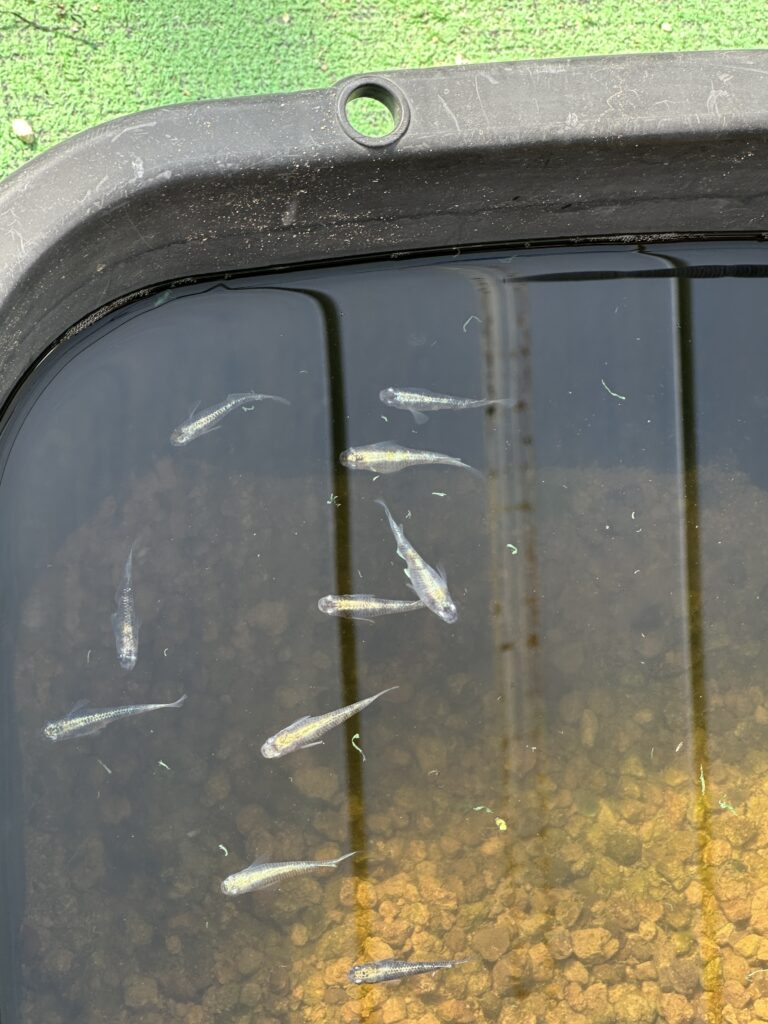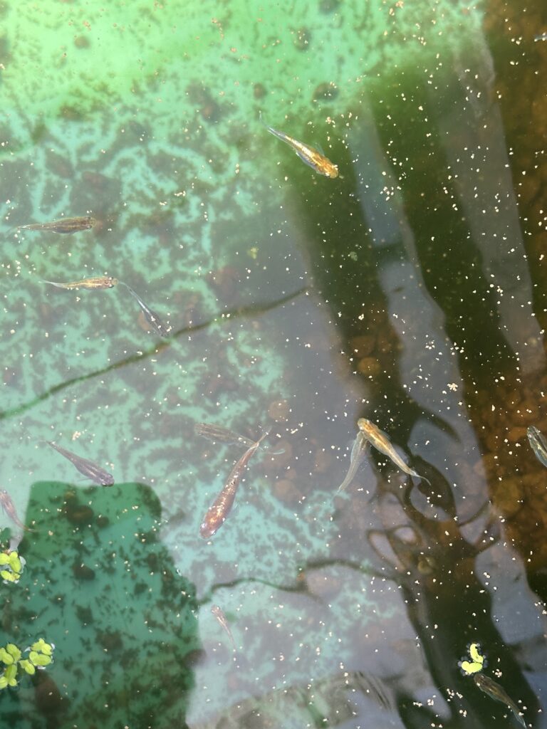 穏やかな日和なのでそ~っと覗いてみると、飼育桶の水面に姿を見せているめだかに沢山会いました🐟店長が忙しくめだかのお世話をしています。